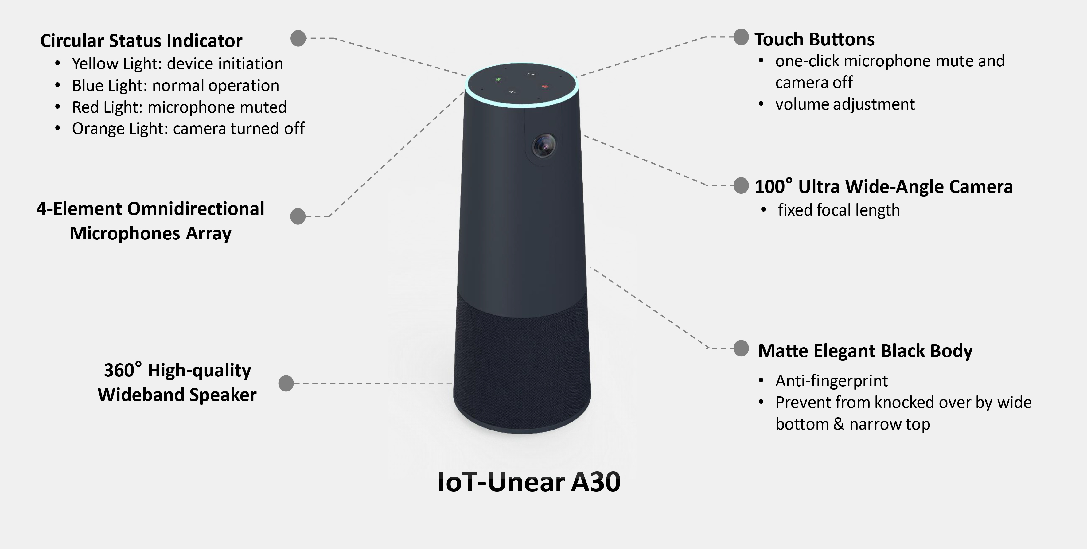 100° full HD wide-angle camera, in-person conference experience